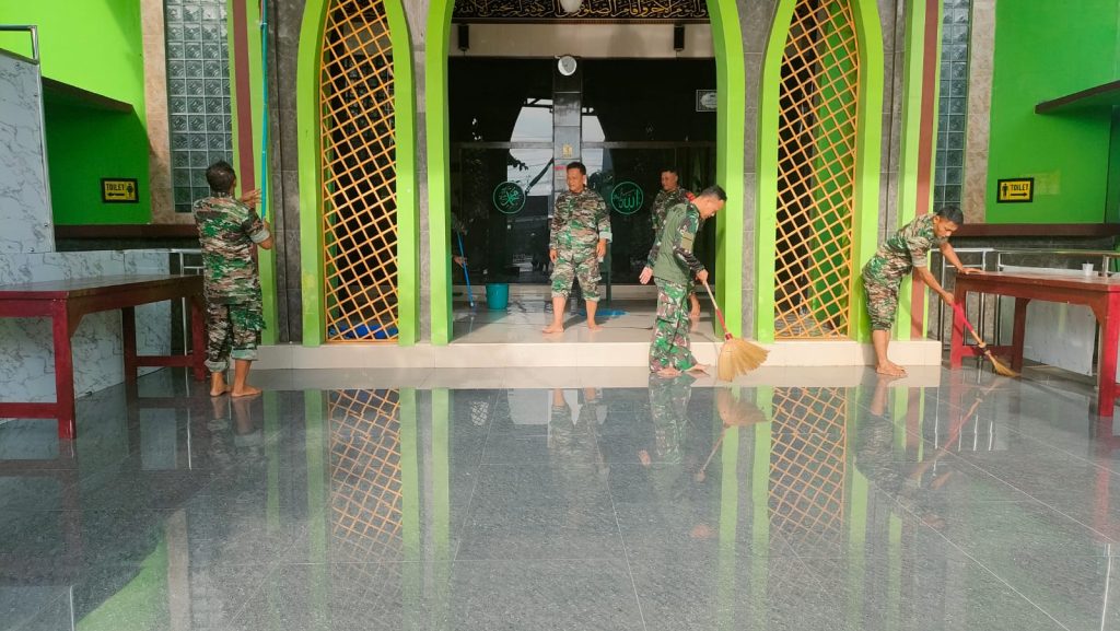 Tegal – Dalam rangka menjaga kebersihan lingkungan dan kebersihan prasarana ibadah, anggota Koramil 11/Pangkah Kodim 0712/Tegal Korem 071/Wijayakusuma melaksanakan pembersihan Masjid Baiturrahim Balamoa Kecamatan Balamoa Kabupaten Tegal. Jumat (26/1/2024)