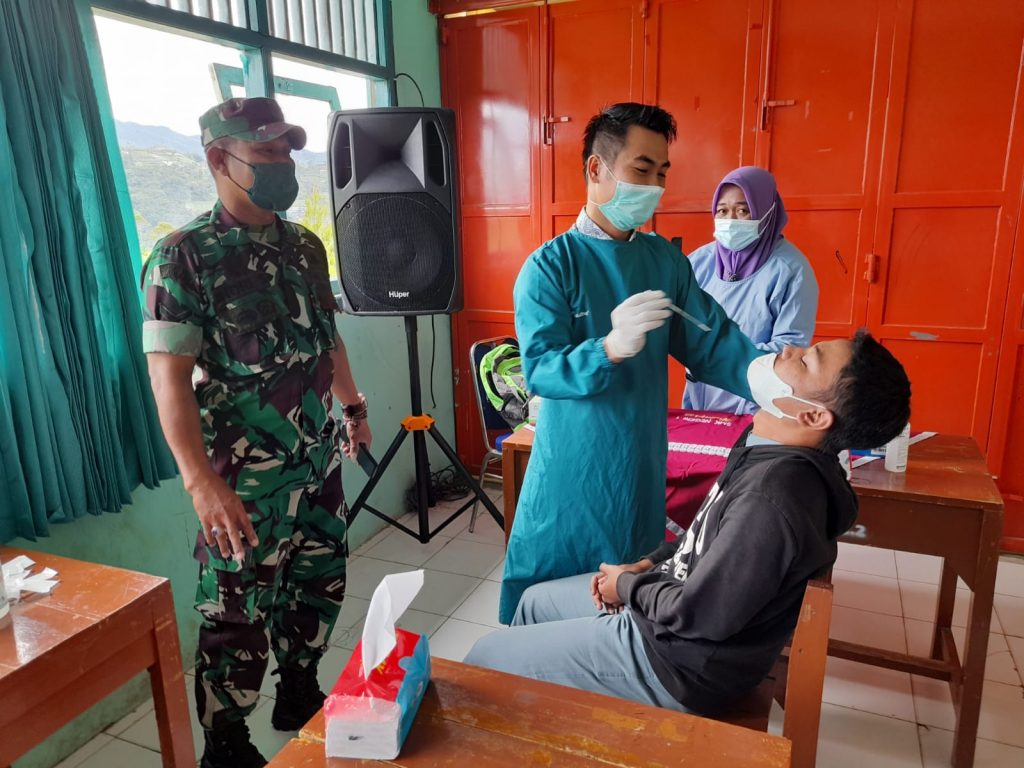 Banjarnegara, Potretjateng.com. Serka Rizal M dan Serda Indri Suryanto,selaku Babinsa Koramil 17/Wanayasa bersama Nakes Puskesmas Wanayasa 1 dan team satgas covid 19 Kecamatan, melaksanakan Test Swab di SMK Negeri I Wanayasa Kecamatan Wanayasa Kabupaten Banjarnegara. Kamis (10/02/2022).