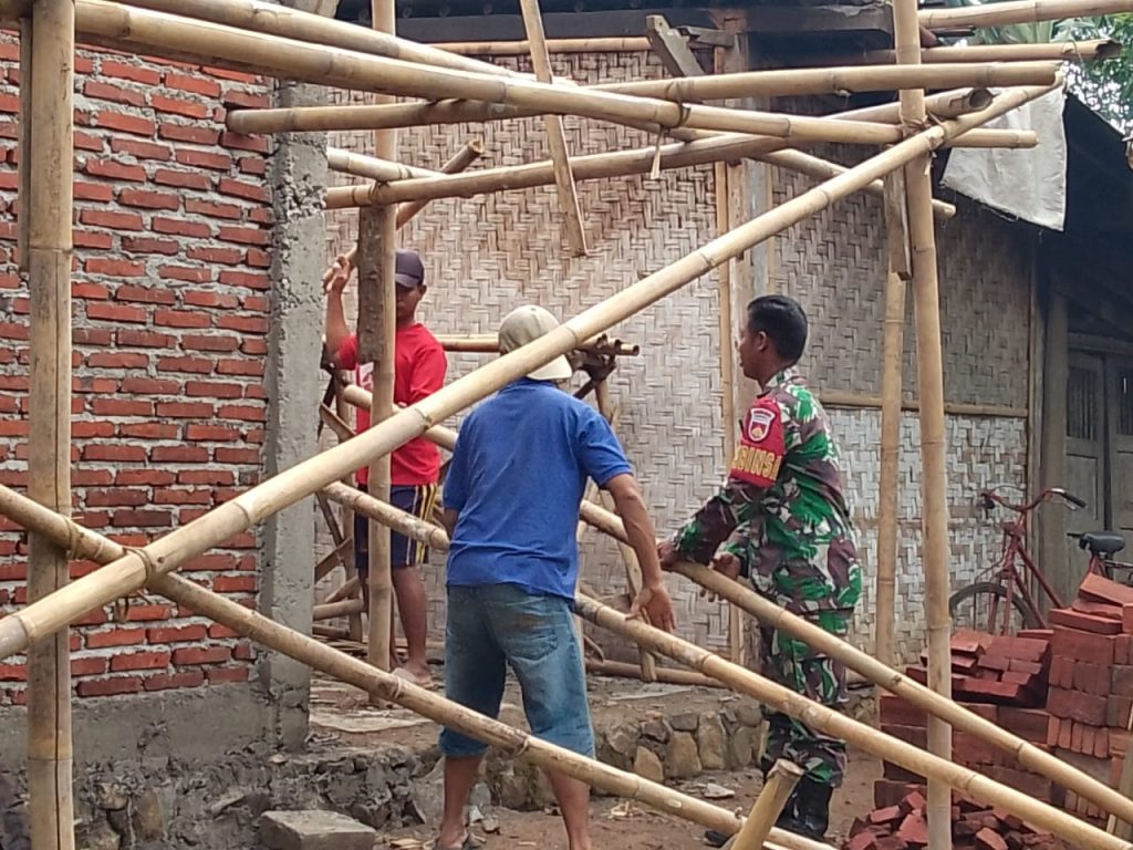 Cilacap – Terciptanya sinergitas antara TNI dengan rakyat, Babinsa Koramil 11/Sidareja Kodim 0703/Cilacap Kopda M. Amaludin membantu warga membangun rumah milik Darmin warga RT. 03 RW. 03 Dusun Purwosari Desa Sadasari, Kecamatan Cipari, Kabupaten Cilacap, Selasa (5/11/2024).