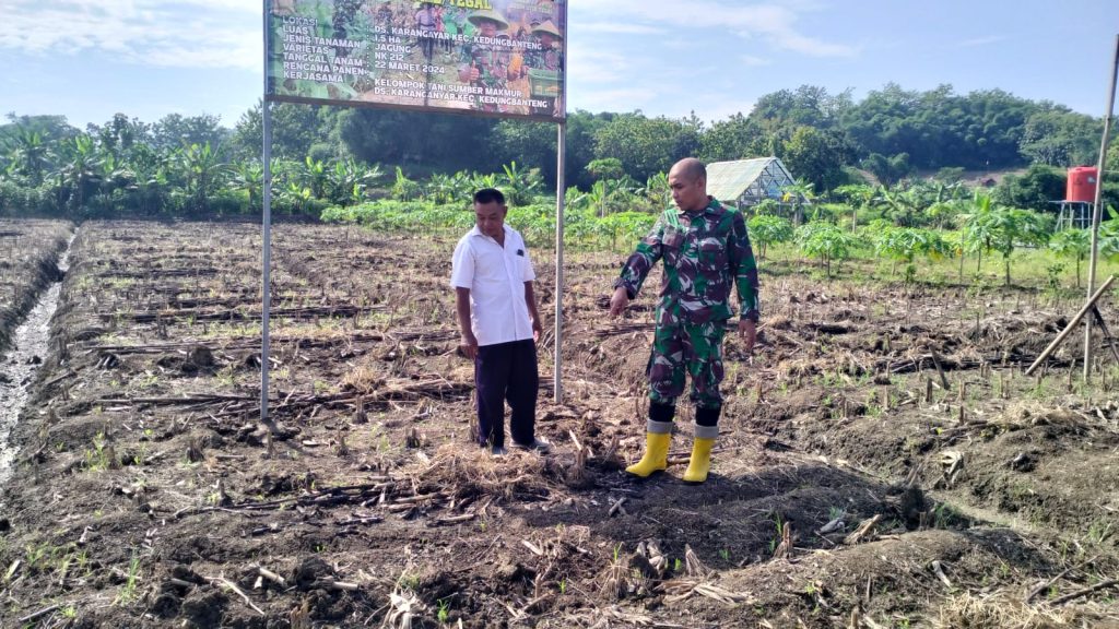 Tegal – Serma Doni selaku Bati Wanwil Kodim 0712/Tegal, Korem 071/Wijayakusuma melaksanakan pemantauan tanaman jagung bersama Ketua PPL Sumber Makmur Bapak Sibad, bertempat di Lahan Ketahanan Pangan Kodim 0712/Tegal Desa Karanganyar Kecamatan Kedungbanteng Kabupaten Tegal. Kamis (28/3/2024)