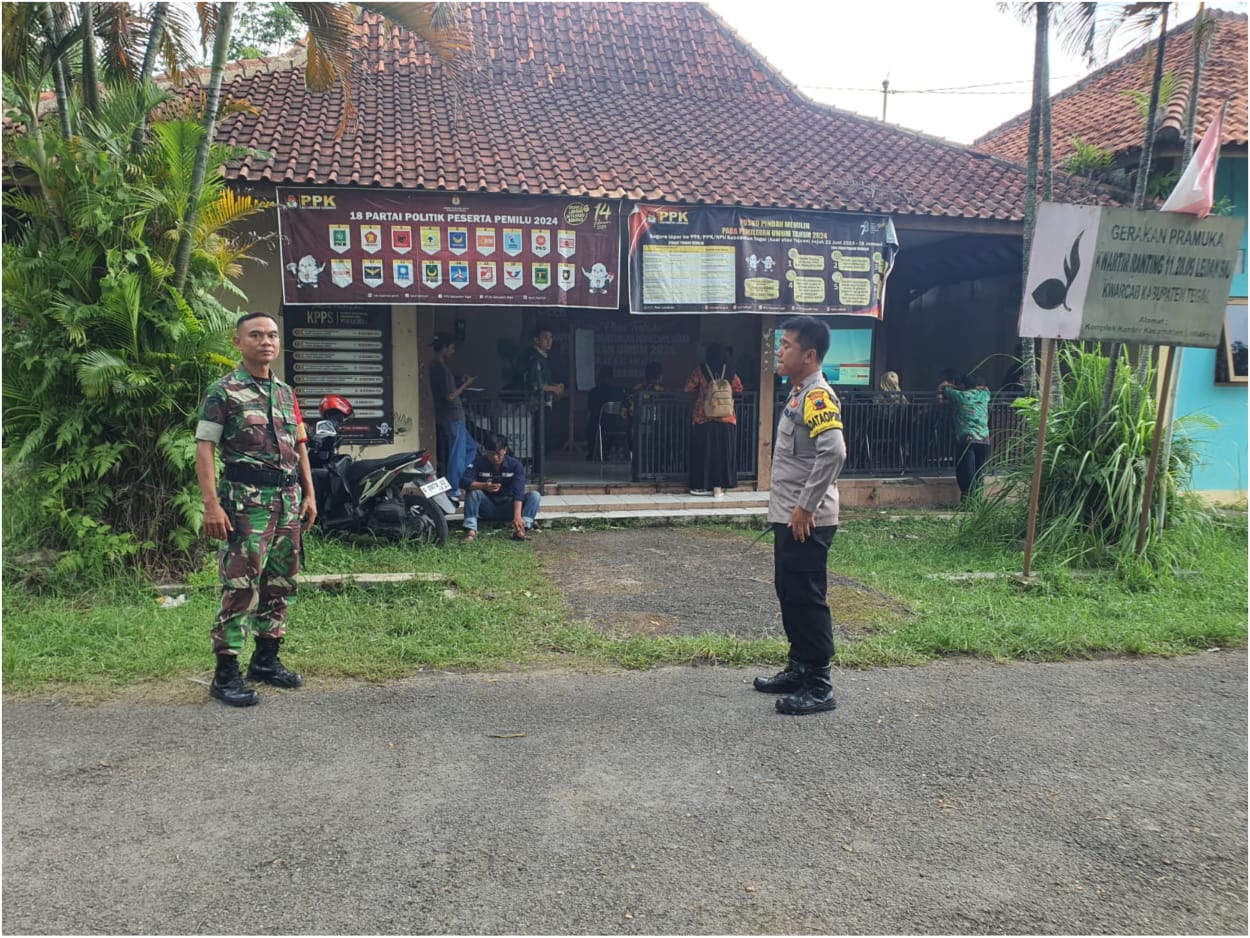 Tegal - Guna mengantisipasi munculnya masalah terhadap perhitungan suara di PPK, Babinsa Koramil 15/Lebaksiu, Kodim 0712/Tegal, Korem 071/Wijayakusuma Sertu M. Tokid bersama Bhabinkamtibmas Polsek Lebaksiu melaksanakan pengamanan Rapat Pleno Terbuka