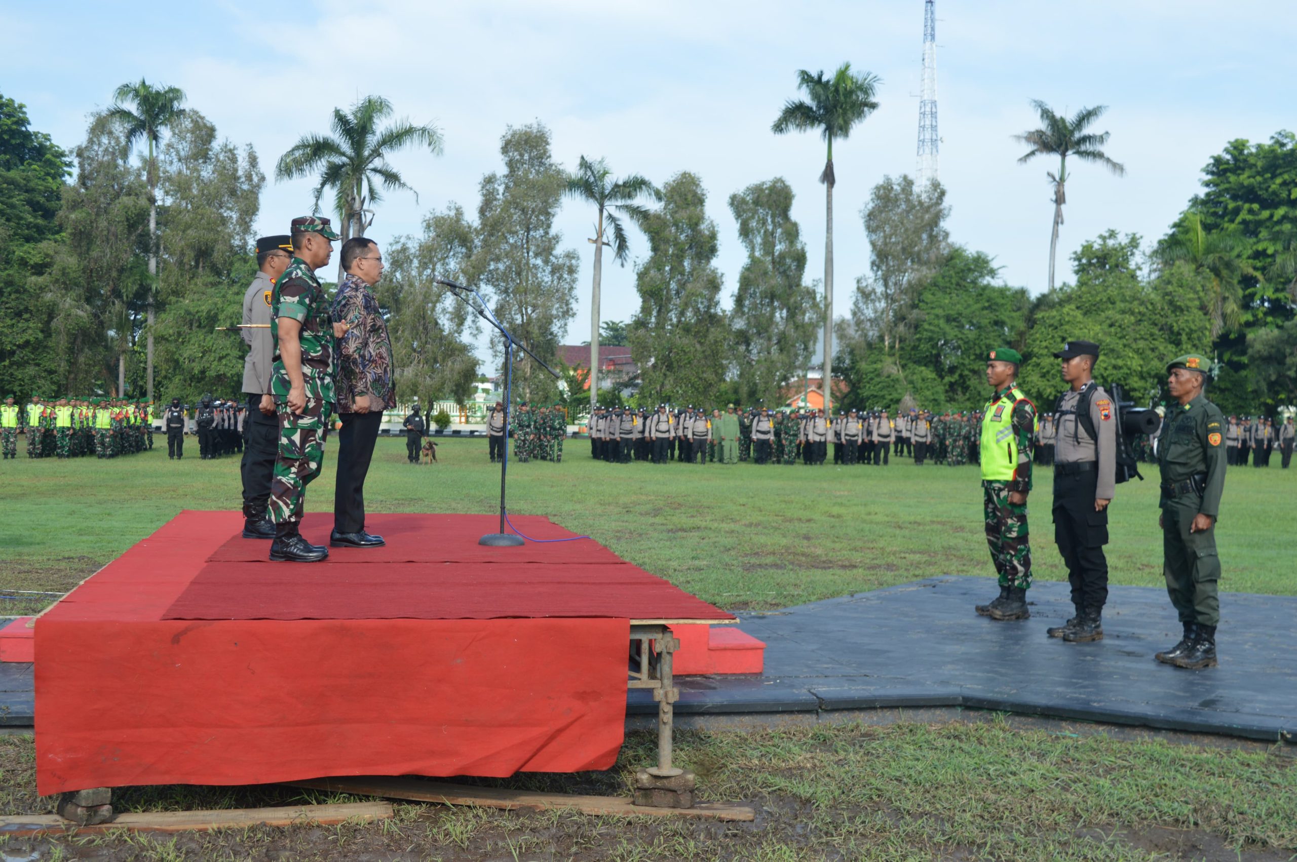 Tegal – Dandim 0712/Tegal, Korem 071/Wijayakusuma Letkol Inf Suratman, SIP., MIP yang diwakili oleh Kasdim 0712/Tegal Mayor Inf Nurohmat, S. Ag mengikuti apel gelar pasukan pengamanan Hari Raya Idul Fitri