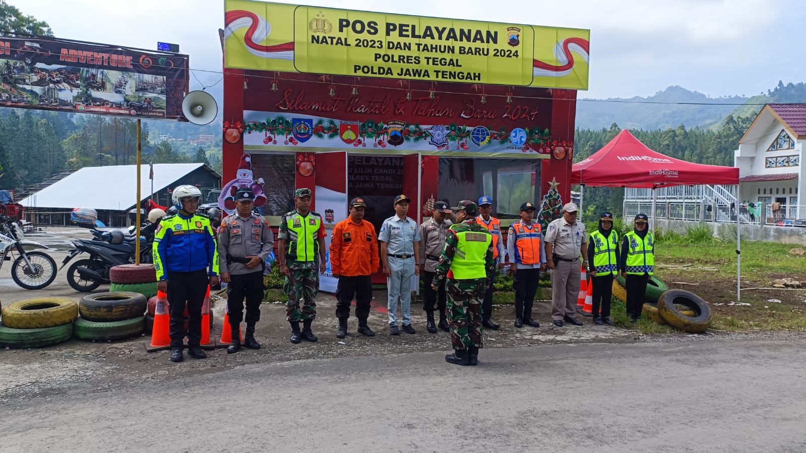 Tegal - Anggota Koramil 19/Bumijawa bersama personil gabungan dari Polsek Bumijawa, BPBD Kabupaten Tegal, Dishub dan Jasa Raharja Kabupaten Tegal siap siaga melaksanakan pengamanan di jalur menuju Objek Wisata Guci
