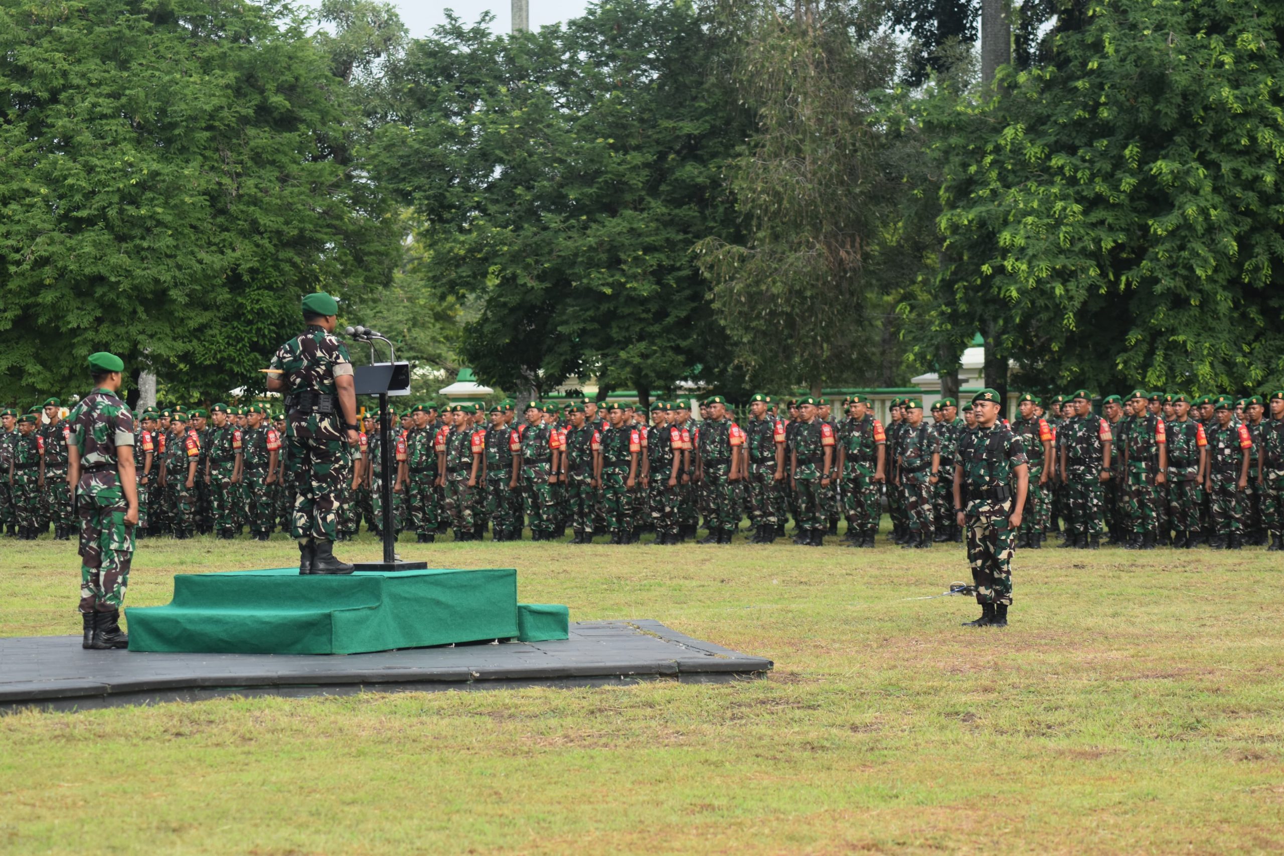 Tegal - Dalam rangka kesiapan pengamanan Pemilu 2024 jajaran Korem 071/Wijayakusuma tingkat wilayah Eks Karesidenan Pekalongan, Kodim 0712/Tegal Korem 071/Wijayakusuma menggelar apel kesiapsiagaan pengamanan pemilu 2024 secara terpusat, dengan pimpinan