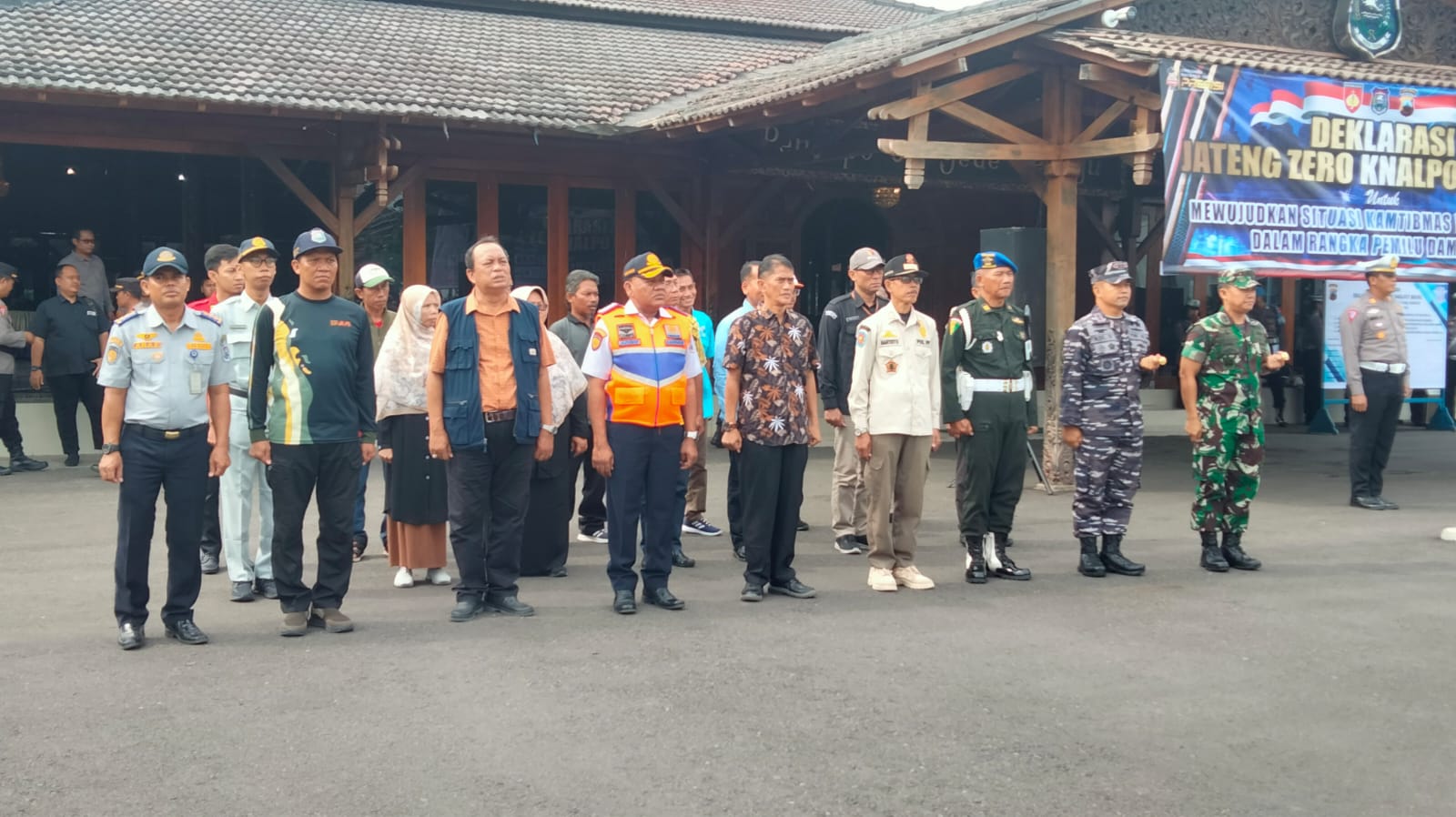 Tegal – Dandim 0712/Tegal Korem 071/Wijayakusuma Letkol Inf Suratman, SIP., MIP menghadiri Apel Deklarasi Jateng Zero Knalpot Brong guna mewujudkan situasi kamtibmas yang kondusif dalam rangka Pemilu Damai 2024, bertempat
