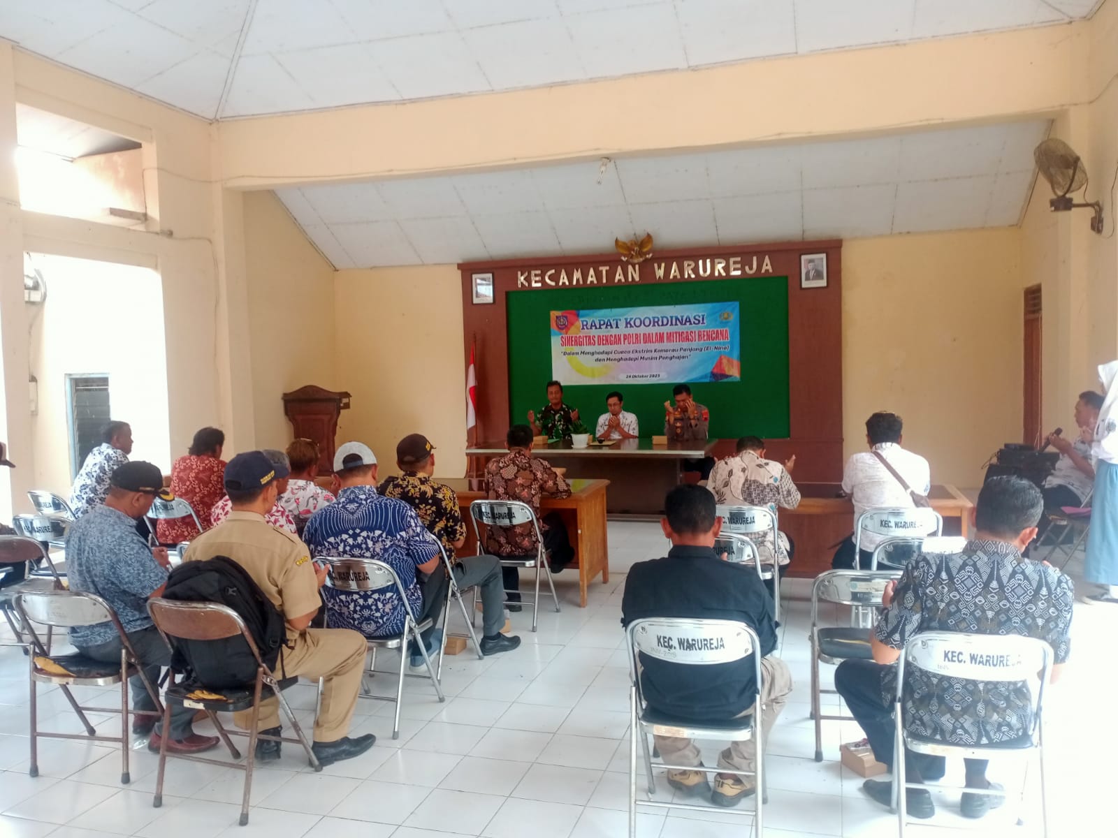 Tegal - Babinsa Koramil 04/Warureja Kodim 0712/Tegal Sertu Warji menghadiri rapat Koordinasi Mitigasi Bencana dalam rangka persiapan penanganan penanggulangan bencana di Wilayah Kec. Warureja bertempat Di Pendopo Kecamatan Warureja Kabupaten