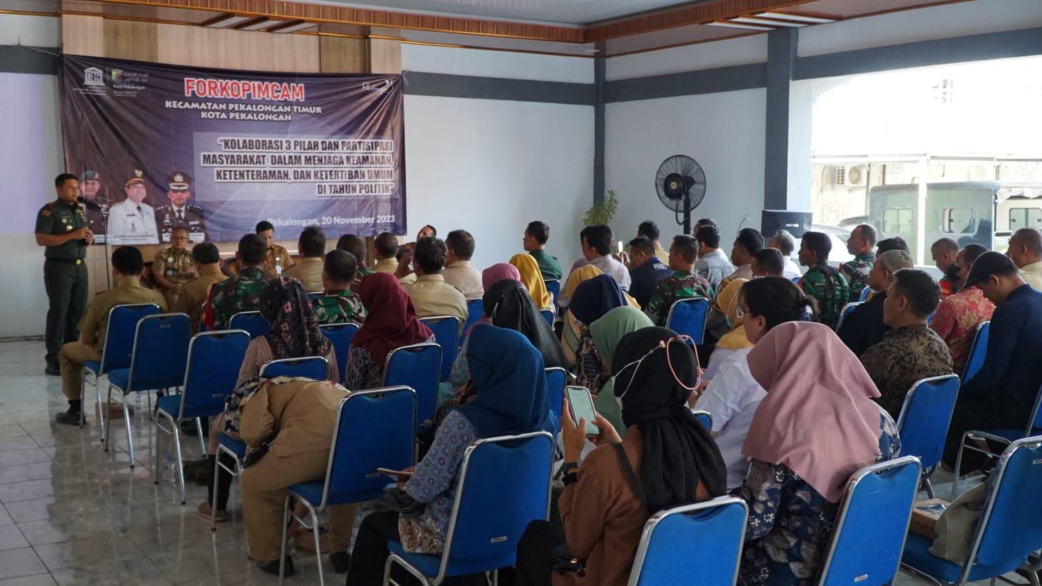 Kota Pekalongan - Dandim 0710/Pekalongan, bersama Walikota Pekalongan dan Kapolres Pekalongan Kota menjadi Narasumber dalam forum Diskusi Forkompimcam Pekalongan Timur Kota Pekalongan yang di gelar di Aula Kecamatan Pekalongan Timur,