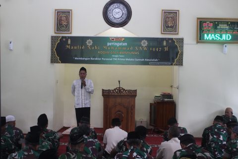 Banyumas – Peringati Maulid Nabi Muhammad SAW 1447 Hijriyah, Kodim 0701/Banyumas Korem 071/Wijayakusuma menggelar pengajian dan doa bersama yang berlangsung di Masjid As Sidiq Kodim 0701/Banyumas Jl. Jenderal Soedirman No.