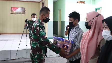 Banjarnegara, Pottejateng.com. Kodim 0704/Banjarnegara menyalurkan bantuan dari Kasad Jenderal TNI Andika Perkasa bersama Ketua umum Persit Kartika Chandra Kirana, Hetty Andika Perkasa secara virtual dalam rangka kegiatan Bakti Sosial peduli anak yatim piatu terdampak covid 19 di wilayah jajaran Kodam IV /Diponegoro bertempat di Tribun Jenderal Soedirman Makodim. Sabtu (04/09/21).