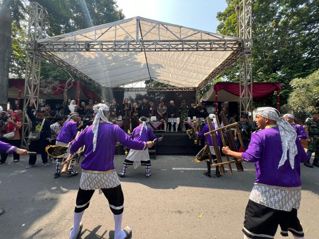 Tiba di Rumdis Wakil Bupati Slawi dilanjutkan dengan prosesi serah terima Pataka Pusaka Tombak Kyai Plered dan Fakta Integritas Kab. Tegal dari perwakilan Sesepuh Keluarga Kalisoka Drs. Ahmad Zamzami M. Hum kepada PJ Bupati Tegal Dr Agustyarsyah, S.SiT.,SH.,MP dilanjutkan Parade Hasil Bumi dan Kesenian dari OPD, Camat se-Kab Tegal, BUMD dan lainnya. (pendimtegal)