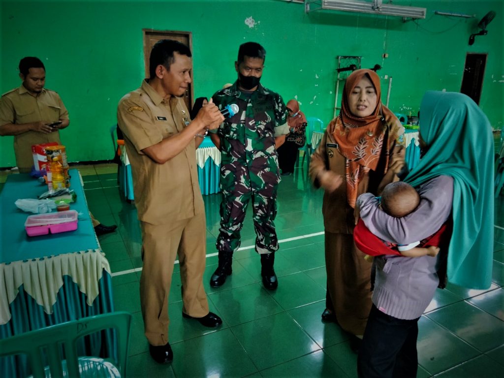 Banjarnegara. Dalam upaya memastikan penanganan pencegahan balita stunting. Serta pemberian makanan tambahan (PMT) tepat sasaran dan sesuai dengan nilai gizi. Danramil 07 Mandiraja Kapten Inf Puji BS bersama Camat,Kapolsek serta babinsa dan bhabinkamtibmas monitoring kegiatan Tim Percepatan Penanganan balita Stunting. Tim itu dari Pemerintah desa serta kader kader kesehatan dan ahli gizi. Di wilayah kerja Puskesmas 2 Mandiraja. Selasa (15/11/22).
