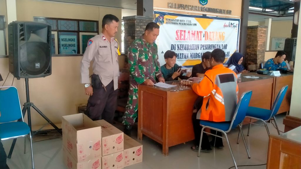 Tegal – Babinsa Koramil 03/Sumurpanggang, Kodim 0712/Tegal Serda Zaenal menghadiri serta mendampingi kegiatan penyaluran bantuan PMT (Pembagian Makanan Tambahan) bagi anak-anak yang masuk dalam kategori Kurang Gizi di Pendopo Kel. Pesurungan Lor Kec. Margadana Kota Tegal. Selasa (17/9/2024)