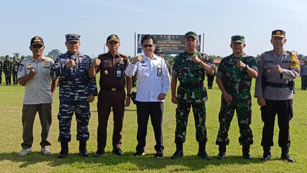 Tegal – Program TNI Manunggal Membangun Desa (TMMD) Sengkuyang tahap I tahun 2024 resmi ditutup di Lapangan Desa Pedagangan Kecamatan Dukuhwaru Kabupaten Tegal, Rabu (20/03/2024).