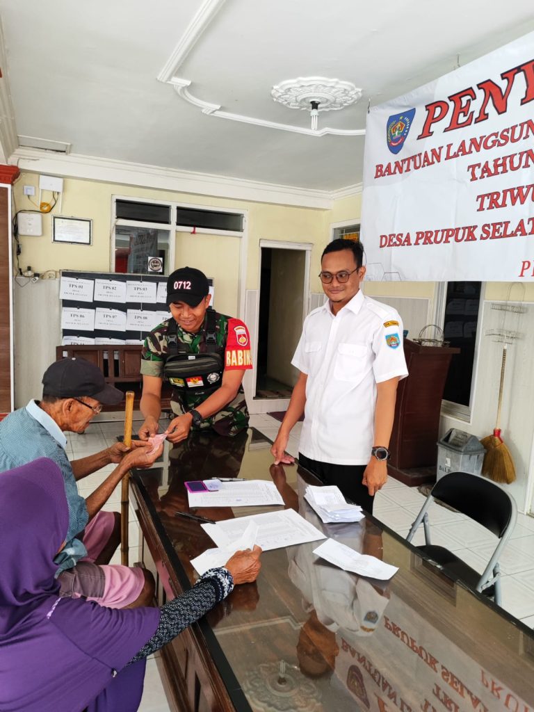 Tegal – Bertempat di Kantor Desa Prupuk Selatan Kec. Margasari Kab.Tegal. Babinsa Koramil 16/Margasari, Kodim 0712/Tegal Serka Wijianto melaksanakan pemantauan dan pendampingan penyaluran BLT (Bantuan Langsung Tunai) Dana Desa tahap III Bulan September Tahun 2024. Rabu (4/9/2024)