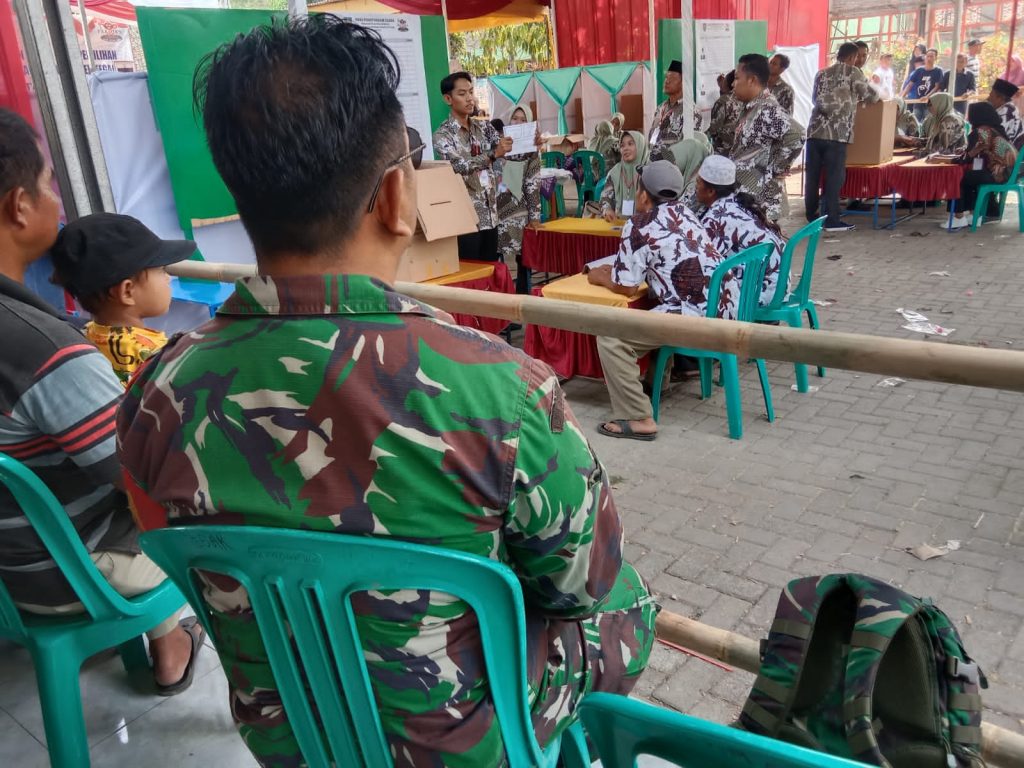 Tegal – Babinsa Koramil 18/Pagerbarang, Kodim 0712/Tegal Sertu Daryanto melaksanakan kegiatan penganan pilkades serentak (Tahap pencoblosan) di Desa Jatiwangi Kecamatan Pagerbarang Kabupaten Tegal , Rabu (11/10/2023)